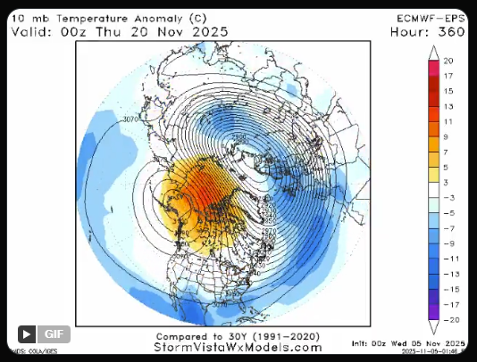 J'ai l'impression (Et les modèles commencent à l'entrevoir) qu'après l'anomalie fraîche que nous connaîtront dans les prochains jours, la 2e partie de Novembre (et peut-être après) pourrait redevenir douce.. -
