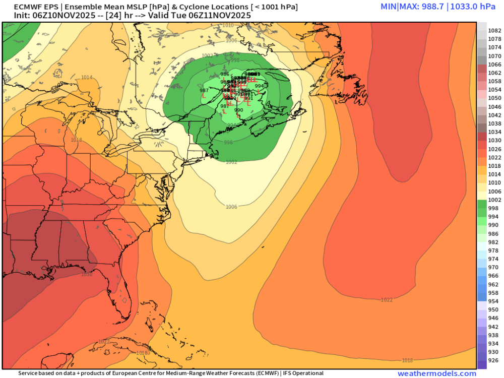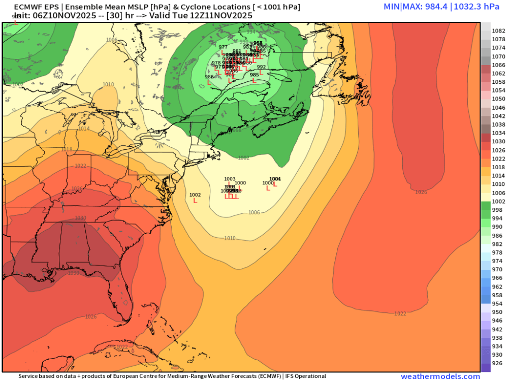 Possible fente sèche du système qui visiterais l'Estrie demain en fin de matiné. Je ne serais pas surpris de voir un 10 degrés et des percées de soleil avant que le système poursuivre sont chemin vers le Nord-Est. Nam de ce midi pour demain 12z:- 46 réponses