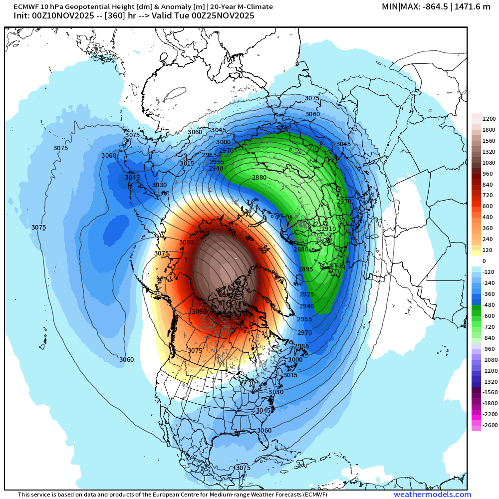Mais effectivement oui pour une petite brèche plus douce vers le (+-) 20 novembre avec une anomalie venant du Nord et non pas par le Sud ou en parallèle avec le Pacifique. Encore une fois avec le repositionnement jusqu'au commencement de sa dissolution fin novembre du fort NAO négatif d'ailleurs bien vu sur cette interprétation de cet Euro EXT.... -