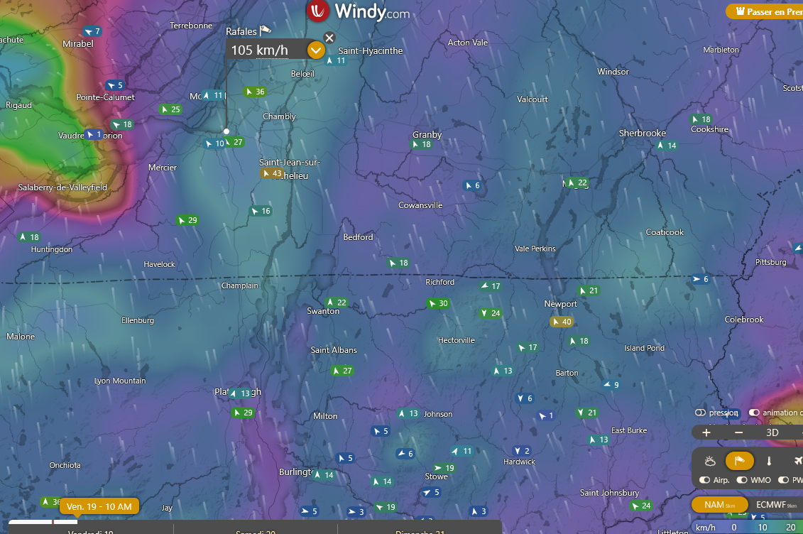 Oui, tu as raison. Je n'étais pas allé assez loin dans le temps et m'étais concentré surtout sur les vents du sud, qui sont canalisés dans la vallée du Richelieu. Effectivement, de fortes rafales avec le passage du front froid, vendredi. -
