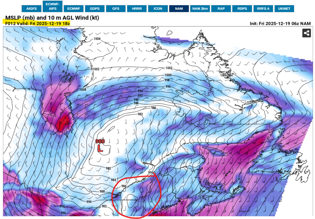 Hmmm.... je trouve ça pessimiste. Quand je regarde le gradient de pression, il se resserre surtout demain matin. Selon moi, les vents les plus forts seront surtout entre 10h00 et 14h00 de part et d'autre du front froid. J'ai aussi jeté un oeil aux prévisions de vents pout CYUL et CYHU et les rafales prévues pour CYHU sont de 60kmh ou moins jusqu'à 10Z demain -