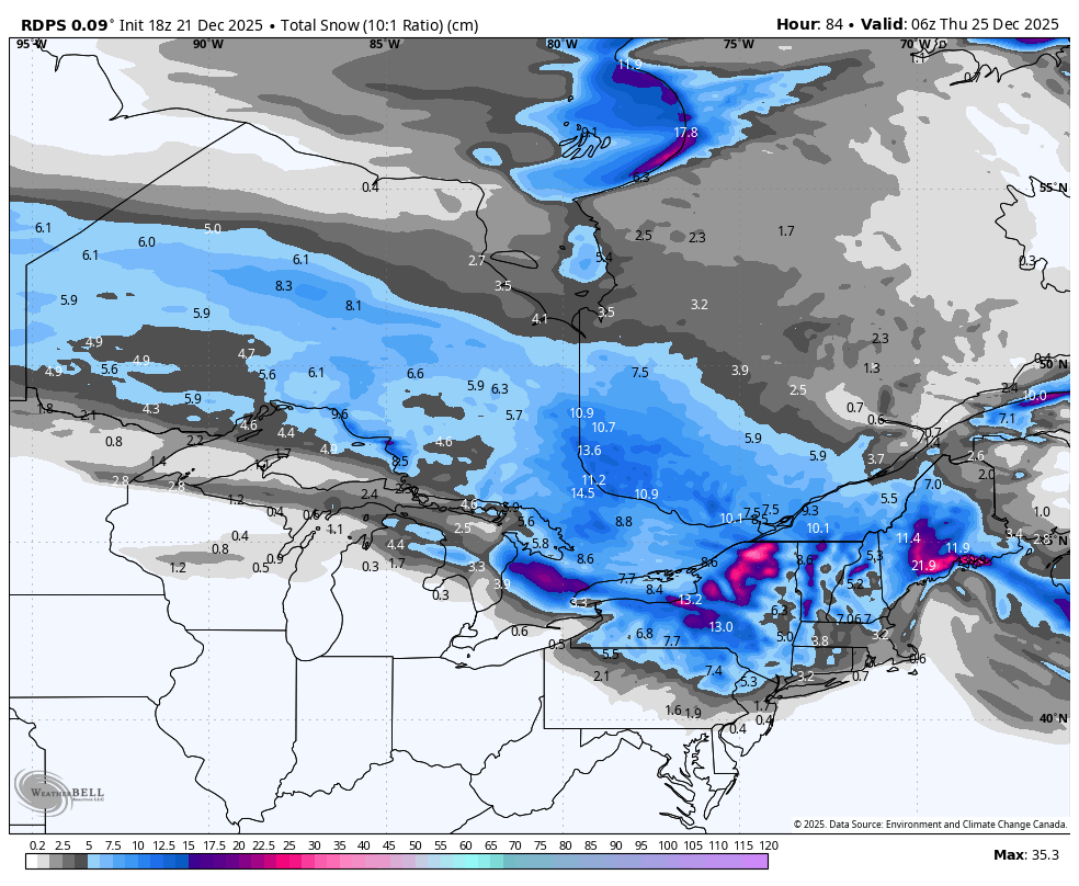 23. EC vient d'augmenter la quantité de neige dans la région de Québec. 10 à 15 cm cette nuit et 5 cm demain.
