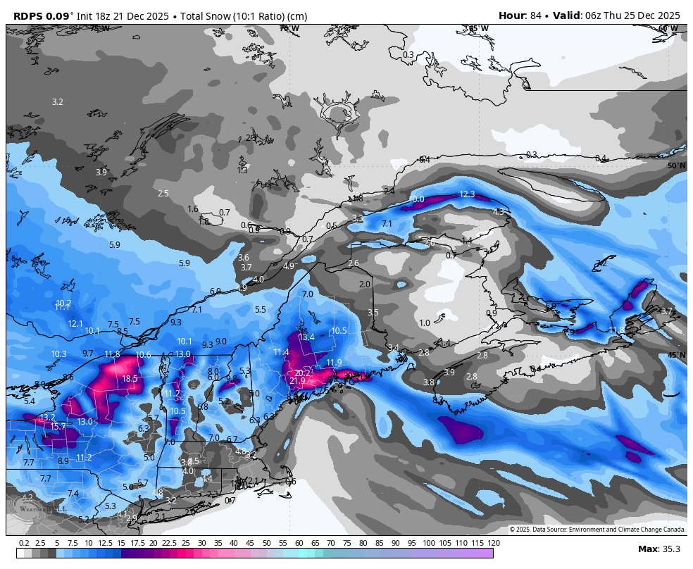10. Bonne fin d'année à tous! De la belle météo active pour conclure 2025. L'ICON de ce midi te donne raison Mizar. Deux beaux systèmes se succèderont en 48 heures. En fin de journée le 26... Et en fin de journée le 28... Le total de neige bien avant la fin du deuxième système... Ça fait rêver le skieur de fond que je suis. À suivre..