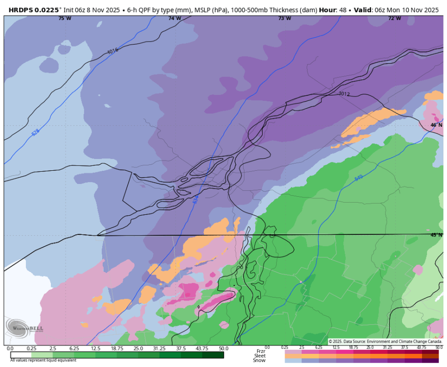 LE HRDPS 06 z @ son max et rien ne serait terminer. Les modèles HR de EC est dans une bonne bordée pour Montréal.- 10 réponses