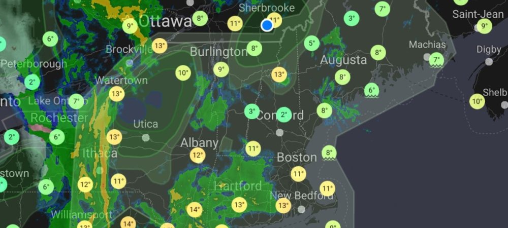 Oui, et pour (mieux) répondre à @etoque, peut-on s'entendre pour environ de 13 h à 17 h demain, un peu plus tôt au nord-ouest de Montréal et un peu plus tard à l'est? -
