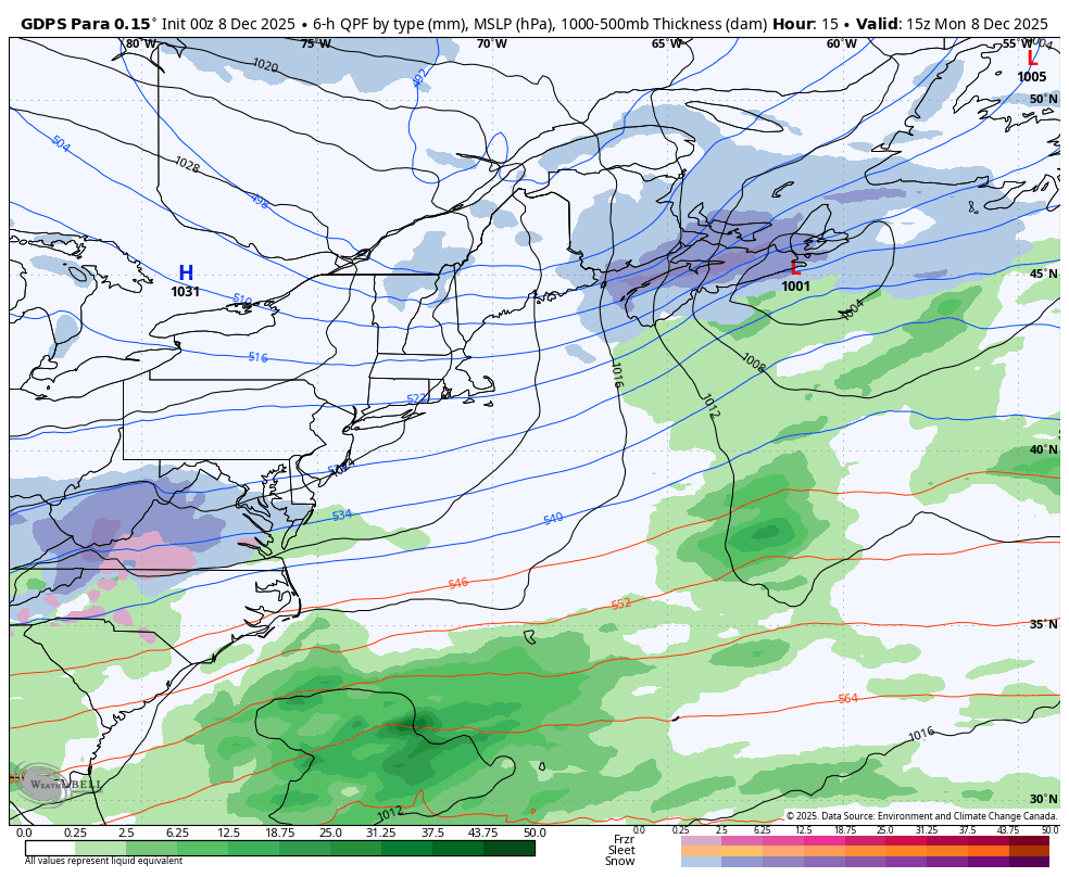 J'aime bien le genre de 'bisbille'' pour mercredi-jeudi . Quesque qui pourrait sauver le Sud du Québec??? Soit de la fente sèche et ou d'un peu de pluie sur la fin , ce serait un possible transfert d'énergie sur un deuxième centre en formation plus @ l'est. -