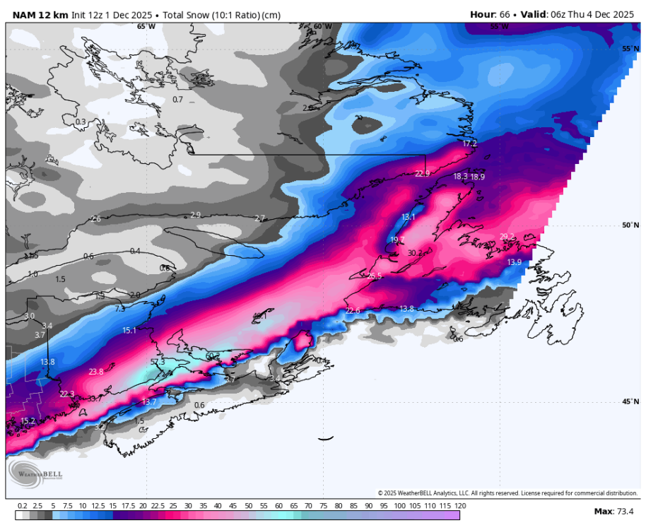 Les modèles voyaient une dry zone pas loin de chez nous, un peu plus vers la Beauce et environ 5-10cm pour Lévis.. pour une fois c’est MétéoMédia qui a vu juste avec 15-20cm de neige bien fluffy, je me demande sur quoi ils se fiaient car même le HRDPS n’avaient pas d’énormes quantités. Bref, bien content! -