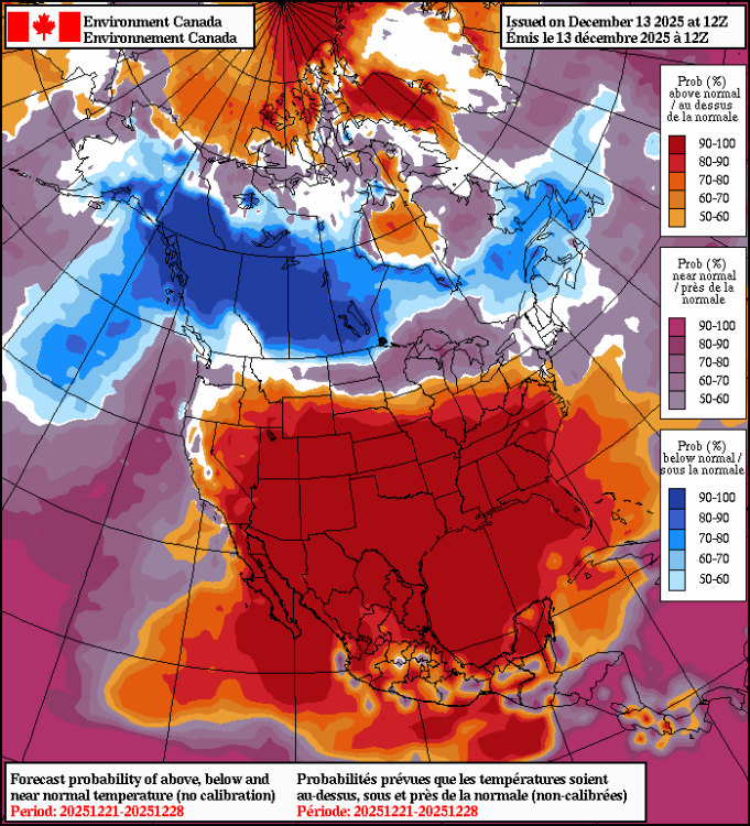 Le GFS a fait un ajustement majeur sur la vers le ECMWF et le UKMET sur la run de 06Z. Il pousse le font chaud beaucoup plus au nord mais tout de même pas autant que les deux autres. Sur le sud... accumulation d'eau en bordure des routes possibles avec les bancs de neige durcis avec des vents potentiellement violents sur la rive sud dans les montérégiennes. Une poussée de fièvre d'une douzaine d'heures avec, derrière, un set-up intéressant pour des bourrasques de neige. Des avertissements jaunes ou rouges?!! https://www.pivotalweather.com/model.php?m=ecmwf_full&p=prateptype_cat_ecmwf-imp&rh=2025121400&fh=132&r=conus&dpdt=&mc=bl -