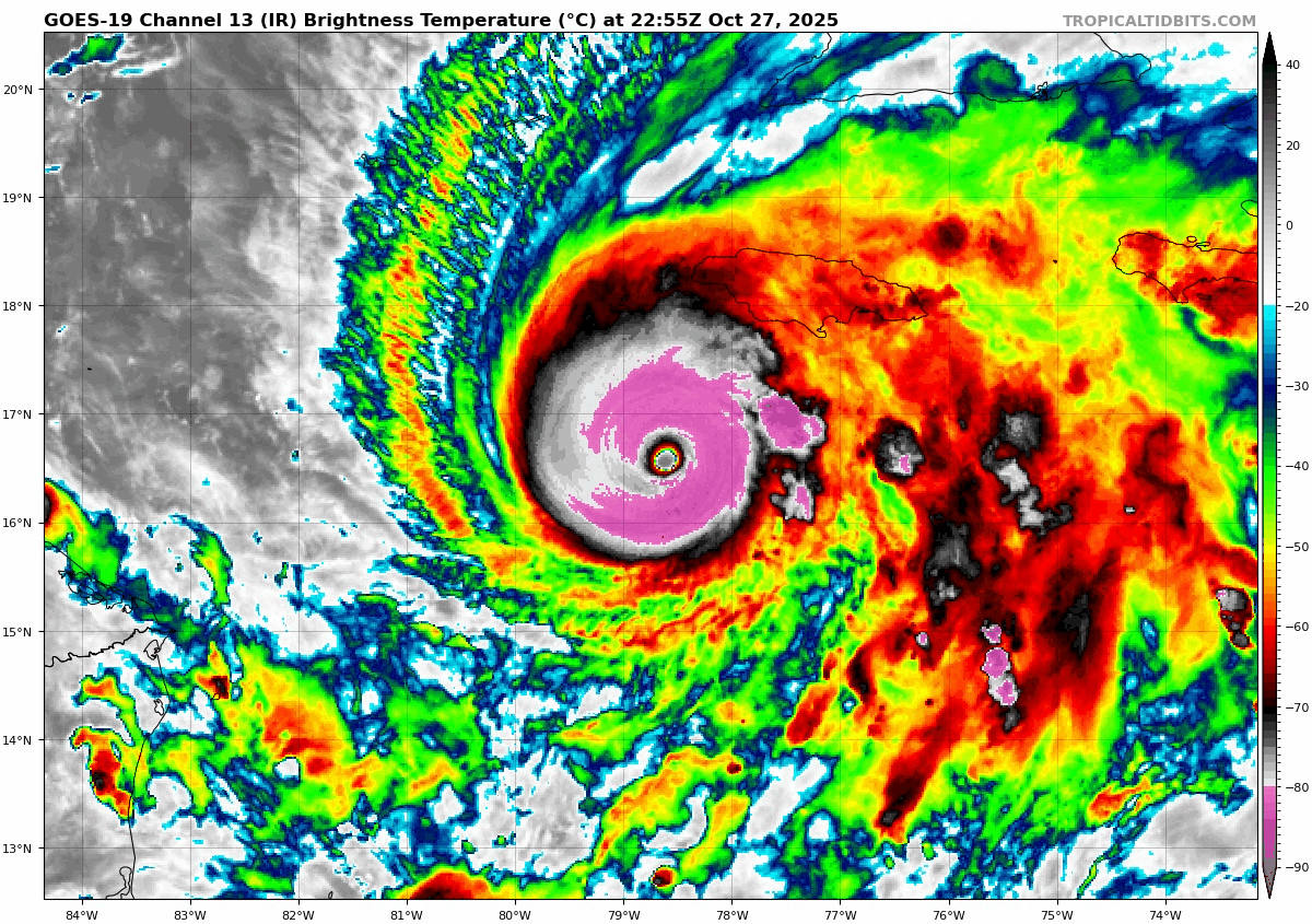 La signature infrarouge de la bête est particulièrement spectaculaire ce soir. Il semble y avoir une expansion des sommets les plus froids à la fin de la séquence. Souhaitons pour les jamaïcains que ce ne soit pas une nouvelle phase d'intensification.