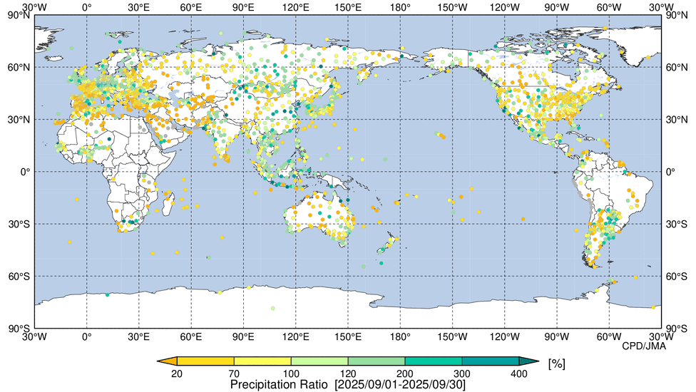 Même @ l'échelle globale pour tout le mois de septembre, on peut pas dire que ce fut le déluge et mis @ part la Mer de Chine méridionale avec le passage de quelques typhons, cela aura été assez sec ''pratiquement partout''. -