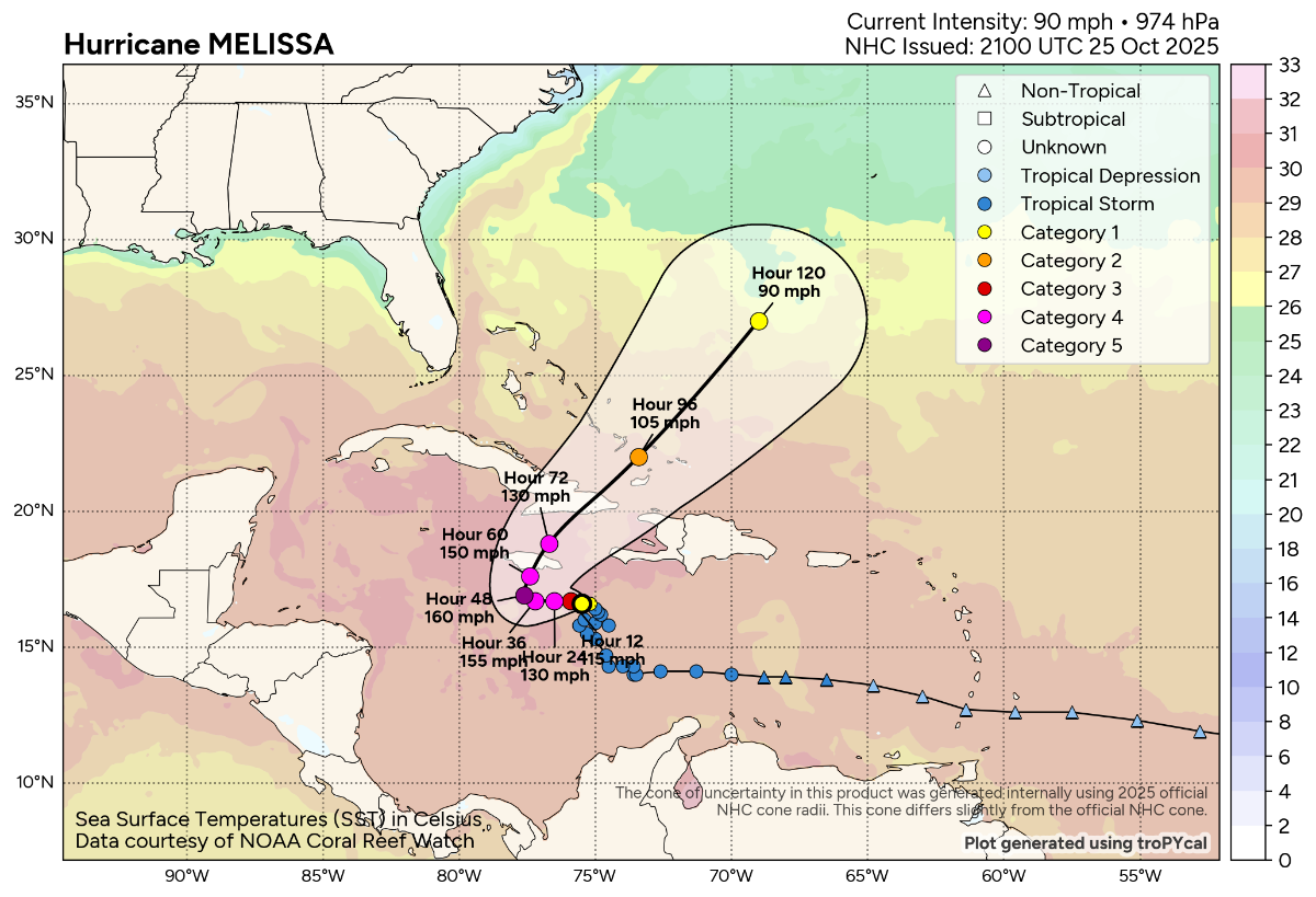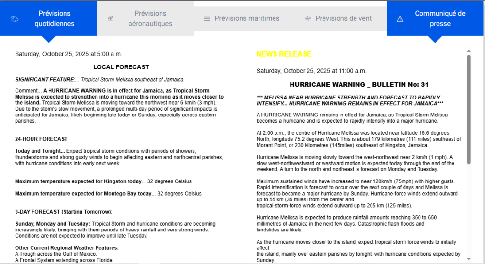 Alors Mélissa...!!! Je focus pas mal en ce qui est possible pour nous et ce, non pas sur une trajectoire avec un impact direct sur notre territoire mais plus sur une possible transfert d'humidité avec un autre système selon le fameux ''timming''... non mais ce matin , ma pensée va un peu plus pour la Jamaïque qui devrait se crouler sous l'emprise d'un Ouragan de cat4/5 stationnaire pendant au moins , 4 jours (+-).