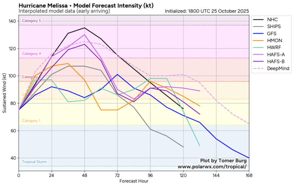 Intensification très rapide. Elle va atteindre la catérogie 5 et stagné près de la Jamaique en fluctuant entre 4-5.. avant de frapper en plein milieu de l'ile... Ça va être terrible.