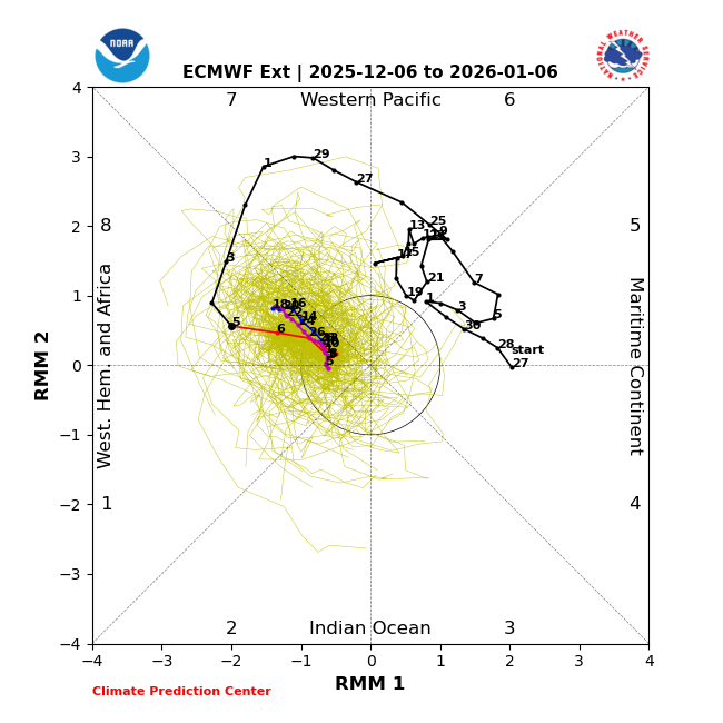 Ceci aussi est peu banal avec une telle ''mjo'' en stagne en phase 8 /neutre/retour en phase 8 (1) .