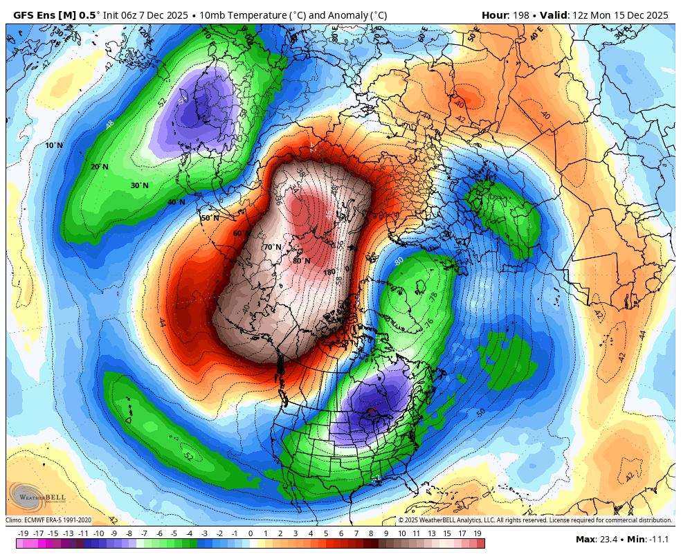 Comme Mizar l'avait mentionné il y a de cela quelques jours, le 19 Décembre pourrait potentiellement être un coup dûr pour notre enneigement. Les modèles montrent une certaine constance. Mais bon, faut s'y attendre vu que l'hiver climato n'est pas encore commencé. Mais regardez-moi tout ce froid à l'arrière ! Et dernière chose: L'englacement à repris de plus belle dans l'arctique