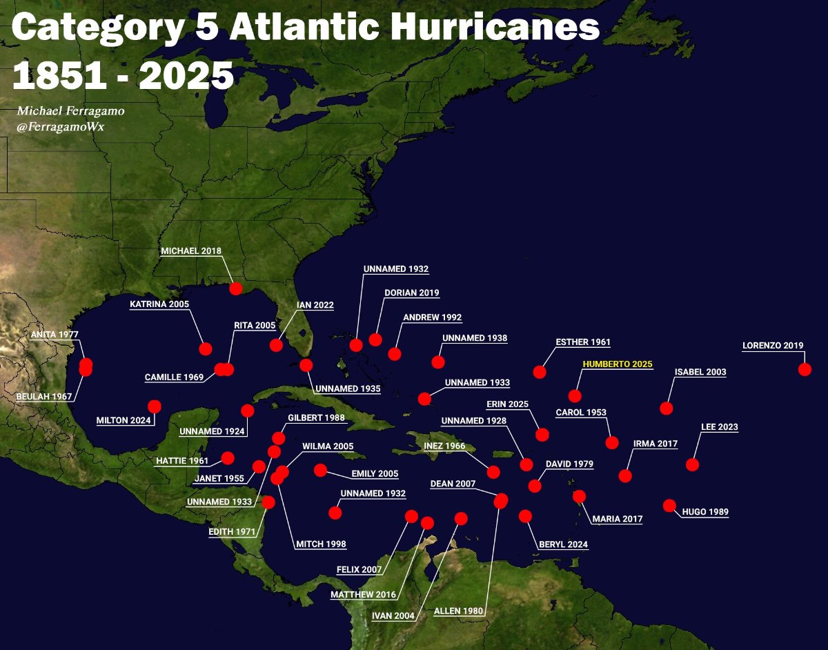Mizar Posté(e) dimanche à 12:55 Auteur Signaler Partager Posté(e) dimanche à 12:55 (modifié) Mais ce matin ce qui m'a le plus fait penser, c'est cette donnée. Depuis presque 175 ans soit depuis 1851, ces toutes ces ouragans qui sont passés en stade 5...seulement 44 dans notre jardin................................... Le point rouge représente le moment ou justement l'ouragan a passer a 5. Modifié dimanche à 13:14 par Mizar Citer Lien vers le commentaire Share on other sites More sharing options...