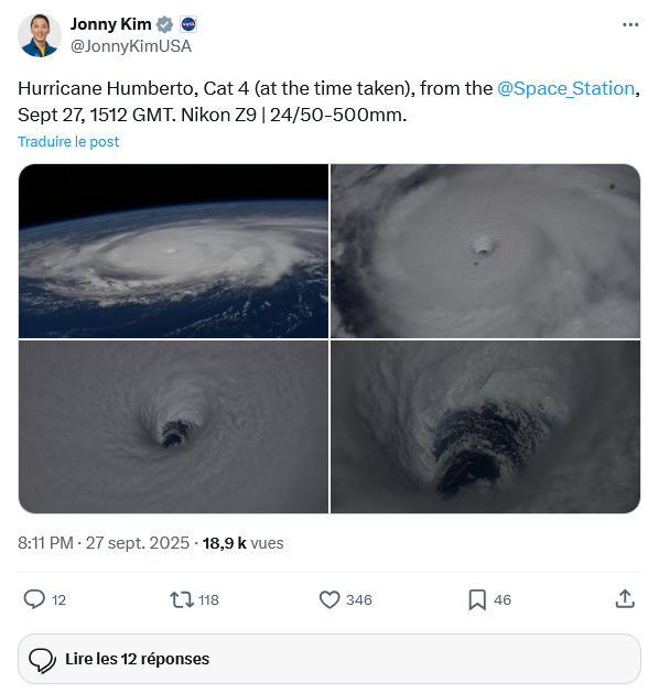 Mizar Posté(e) dimanche à 12:11 Auteur Signaler Partager Posté(e) dimanche à 12:11 (modifié) Il y a 9 heures, Pooram a dit : Ouais, un scénario possiblement complexe à venir ; Allo Bruno !!! De part sa forme structurelle et ce encore ce matin, c'est de loin une des plus belles ouragans que j'ai observer depuis longtemps. Modifié dimanche à 12:12 par Mizar Citer Lien vers le commentaire Share on other sites More sharing options...