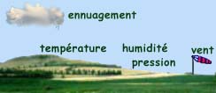 telles que la température, l'humidité, la pression, la vitesse et la direction du vent, la présence ou non de nuages et de précipitation. Les conditions actuelles sont celles du moment présent et servent à prédire l'évolution de l'atmosphère suivant des règles strictes.
