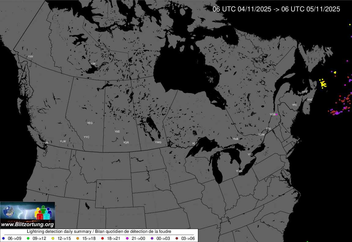 Détection de la foudre / Blitzortung / Sommaires quotidiens (de J 06Z à J+1 06Z)