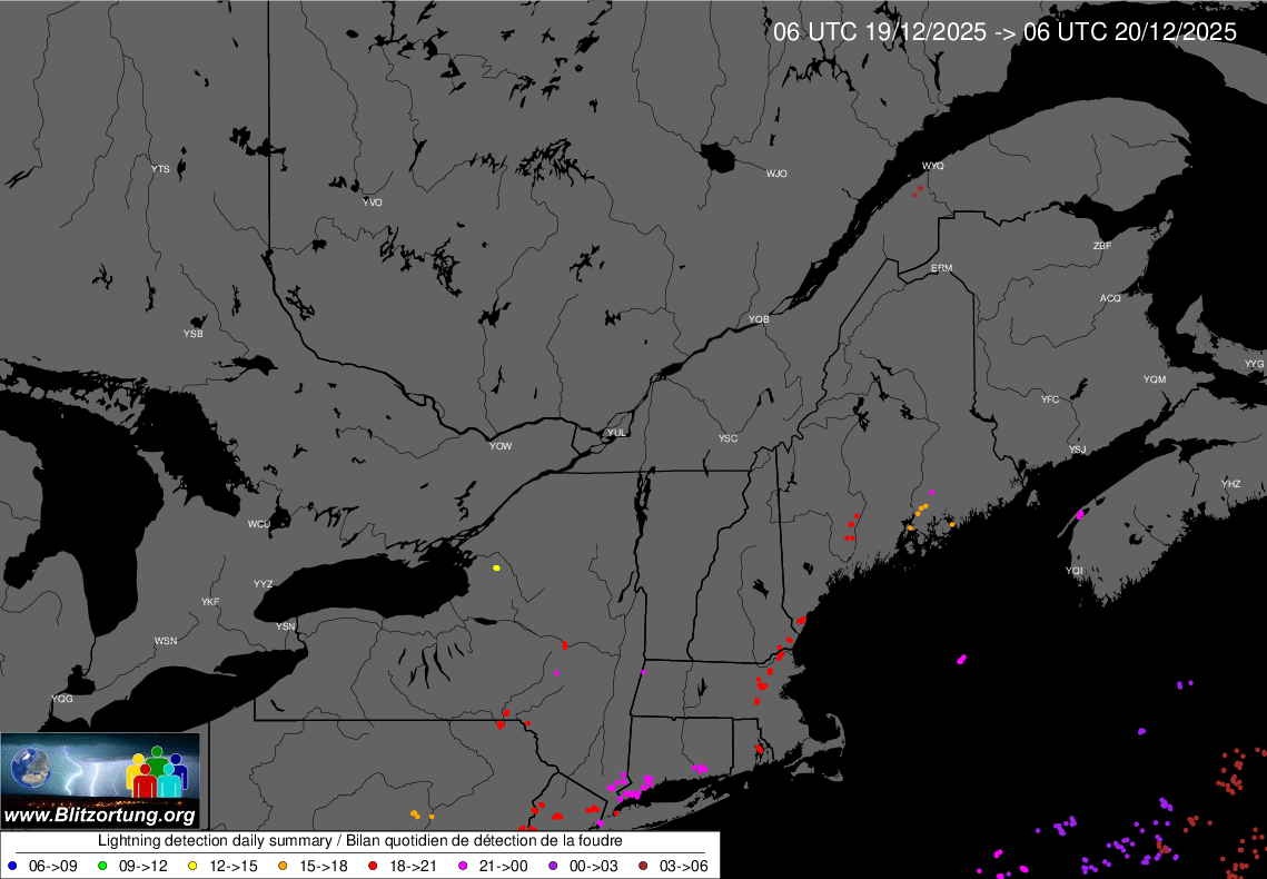 Détection de la foudre / Blitzortung / Sommaires quotidiens (de J 06Z à J+1 06Z)