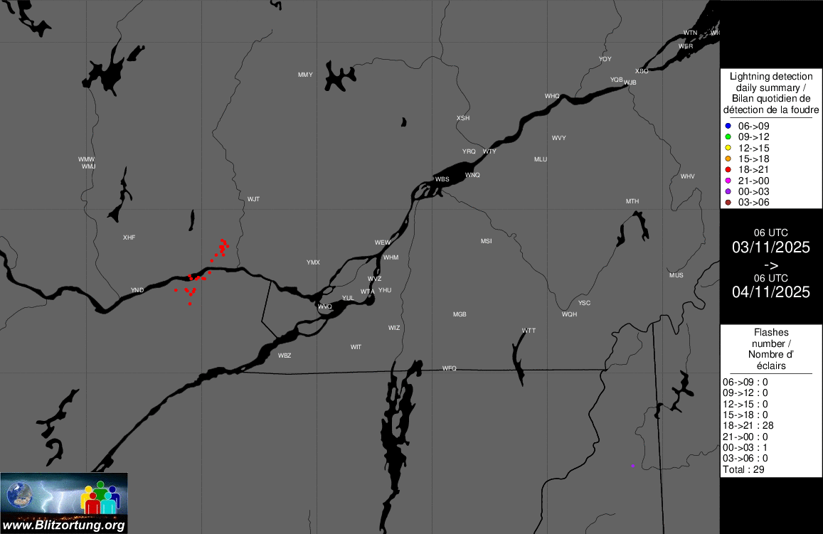 Détection de la foudre / Blitzortung / Sommaires quotidiens (de J 06Z à J+1 06Z)